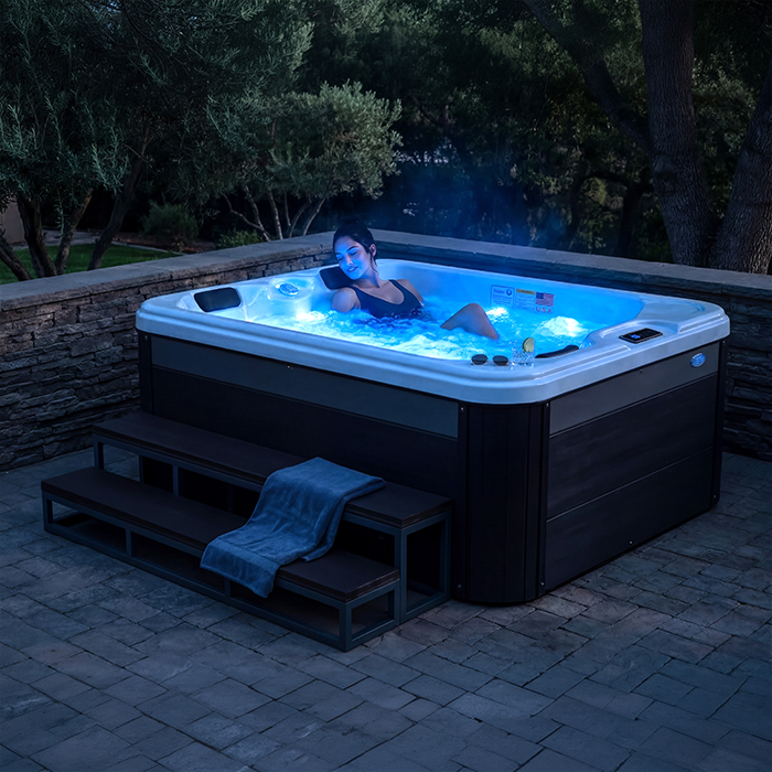 Features: Cascade Waterfall, 5.5kW Titanium Heater, 5" Multi-Color LED Spa Light