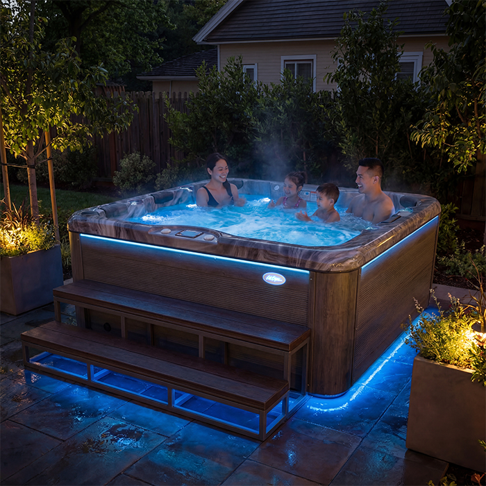 Everything you need to heal sore muscles come standard with the LaJolla PL894L. With 94 exclusive Velocity Jets, this spa has one full size ergonomic lounger, 2 captain seats, and 3 versatile seats. Enjoy the LED C-Pillows, personalizing your jets with the ATS Plus, placing your toes on the foot jets, and immersing in your favorite color with perimeter LED lighting.